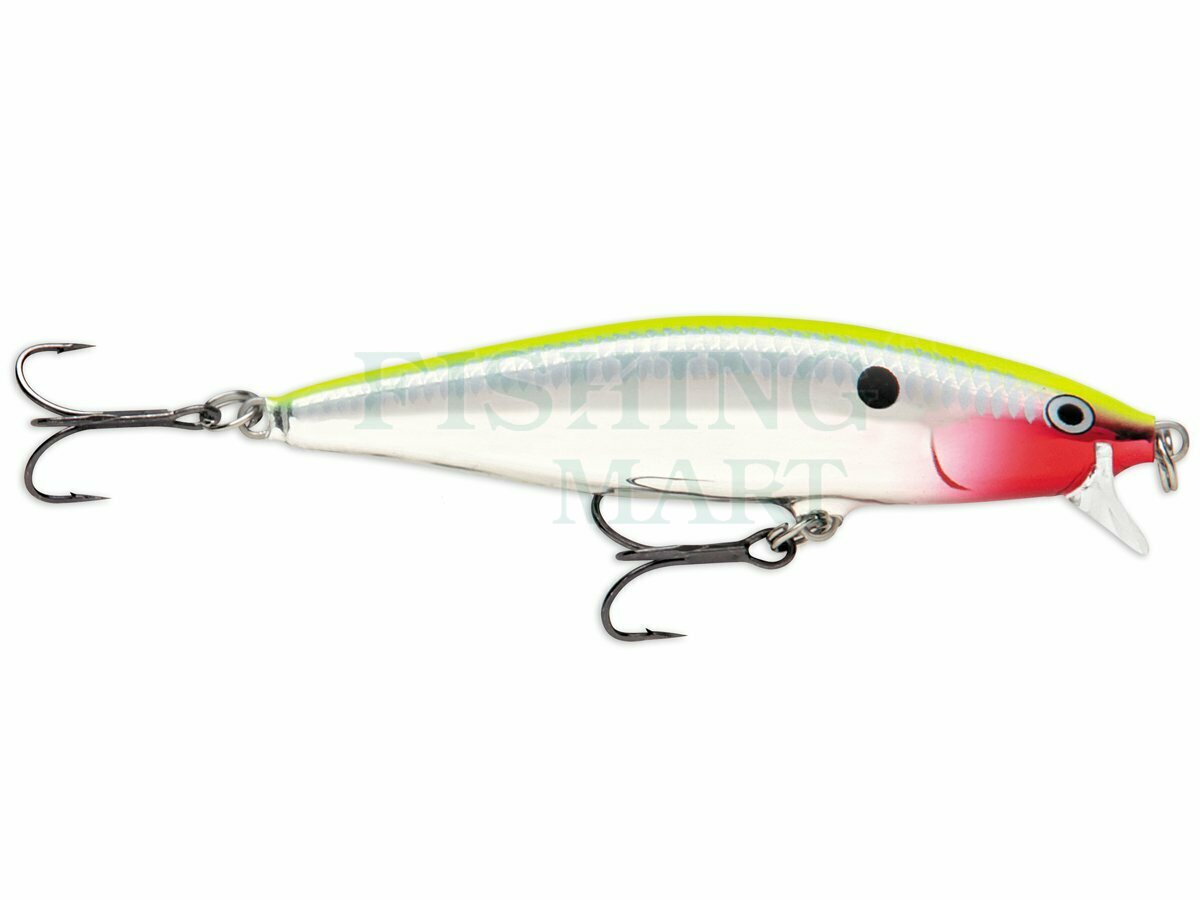 Built of balsa with a slow-rising response on retrieve pause, the Flat Rap® swims with a hard-flashing modification of the classic Rapala® "wounded-minnow" action. The triangle lip assists in creating the unique, quicker flashing action while deflecting off obstacles in its way. Sticky sharp VMC® black nickel hooks. Hand-tuned and tank-tested to ensure it embodies the action Rapala® is known for.