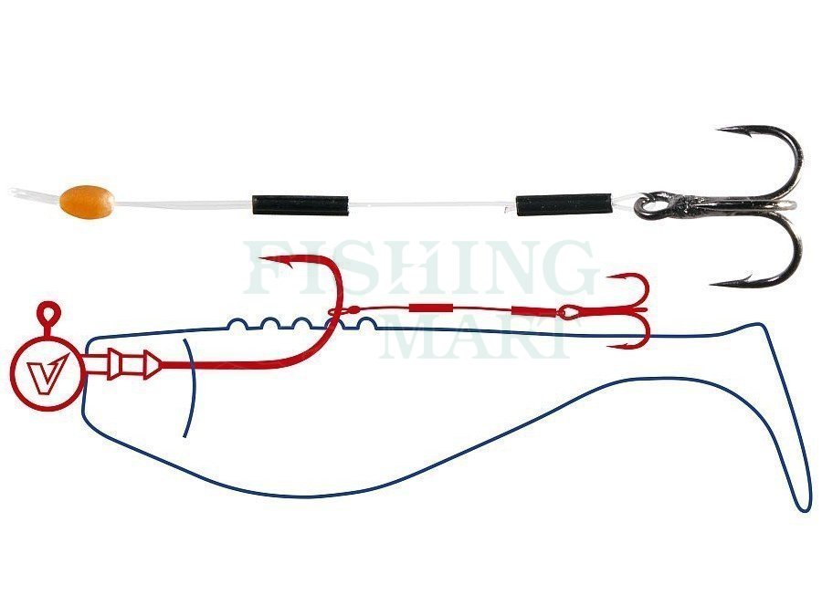 Made form nylon line with 8 kg strength and Dragon V-POINT hook. They greatly improve the percentage of caught fish in the case of delicate bites of the fish when they only nibble the lure from the tail side.