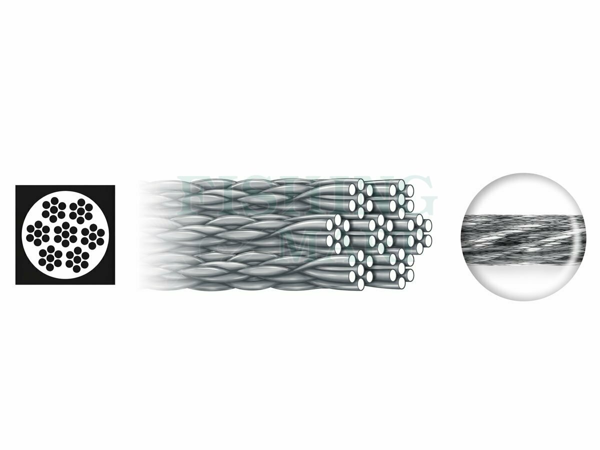 Przypon wykonany jest z 49 włókien splecionych w układzie 7x7, co zapewnia bardzo dużą elastyczność i odporność na zaginanie. W przeciwieństwie do wersji z otuliną, Surfstrand pracuje swobodniej i lepiej dopasowuje się do ruchu przynęty.