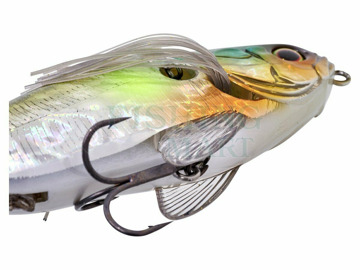 SLICK BAIT to powierzchniowa przynęta o realistycznym wykończeniu i detalach, która doskonale odwzorowuje małą, konającą przy trzcinach rybkę. Jej boczny i nietypowy ruch tworzy naturalne wrażenie ryby uwięzionej przy brzegu. To silnie pobudza instynkt drapieżników w zasadzce i zachęca je do ataku na przynętę jak na uciekającą lub umierającą ofiarę. Kierunek pływania można zmienić, po prostu mocując linię do jednego z kółek przechodzących przez korpus przynęty. Na prawym boku przynęta skręca w lewo, a na lewym boku skręca w prawo. Ta sztuczka pozwala wędkarzowi nie być widocznym kierunku przemieszczania się przynęty. Cienkie silikonowe paski wydobywające się z pokryw skrzelowych opierają się na wodzie i tworzą umiarkowany opór. Migocząca akcja wywołuje niesamowite brania. Dwie płetwy piersiowe z ABS zapewniają jeszcze większy realizm, ale przede wszystkim zmniejszają ryzyko splątania kotwiczki z linką podczas wyrzutu. Grzechotka zawierająca trzy szklane kulki działa nawet przy powolnym poruszaniu się, co jeszcze silniej wabi drapieżniki. Ogon wykonany jest z bardzo elastycznego elastomeru a dodatkowo jest przegubowy, co sprzyja naturalnym ruchom i pozwala na szybkie wykonywanie ucieczki. Przemyślany i zaprojektowany głównie do łowienia okoni, jest również odpowiedni do polowania na inne gatunki, takie jak szczupak.