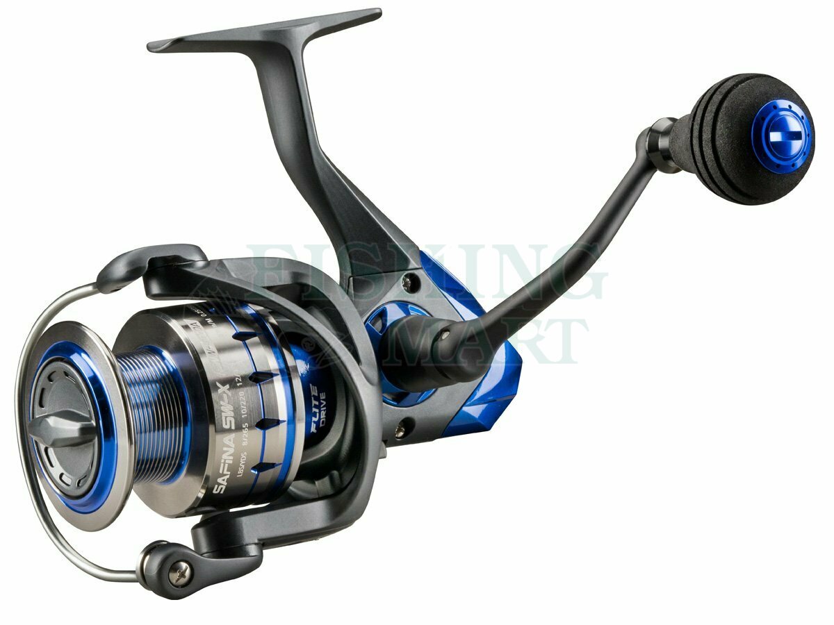 Kołowrotek spinningowy Okuma Safina SW-X ma korpus z grafitu odpornego na korozję, wirnik o cyklonowym przepływie (CFR) oraz system flite drive, które poprawiają stabilność i płynność pracy.