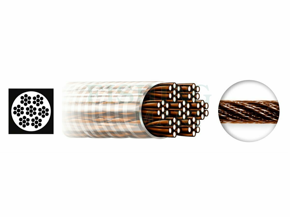 Rdzeń przyponu tworzy splot 49 włókien w układzie 7x7, co przekłada się na dużą elastyczność i bardziej naturalną pracę przynęty w porównaniu z klasycznie sztywniejszymi przyponami stalowymi. Transparentna otulina nylonowa dodatkowo poprawia odporność na skręcanie i chroni materiał podczas intensywnego łowienia.