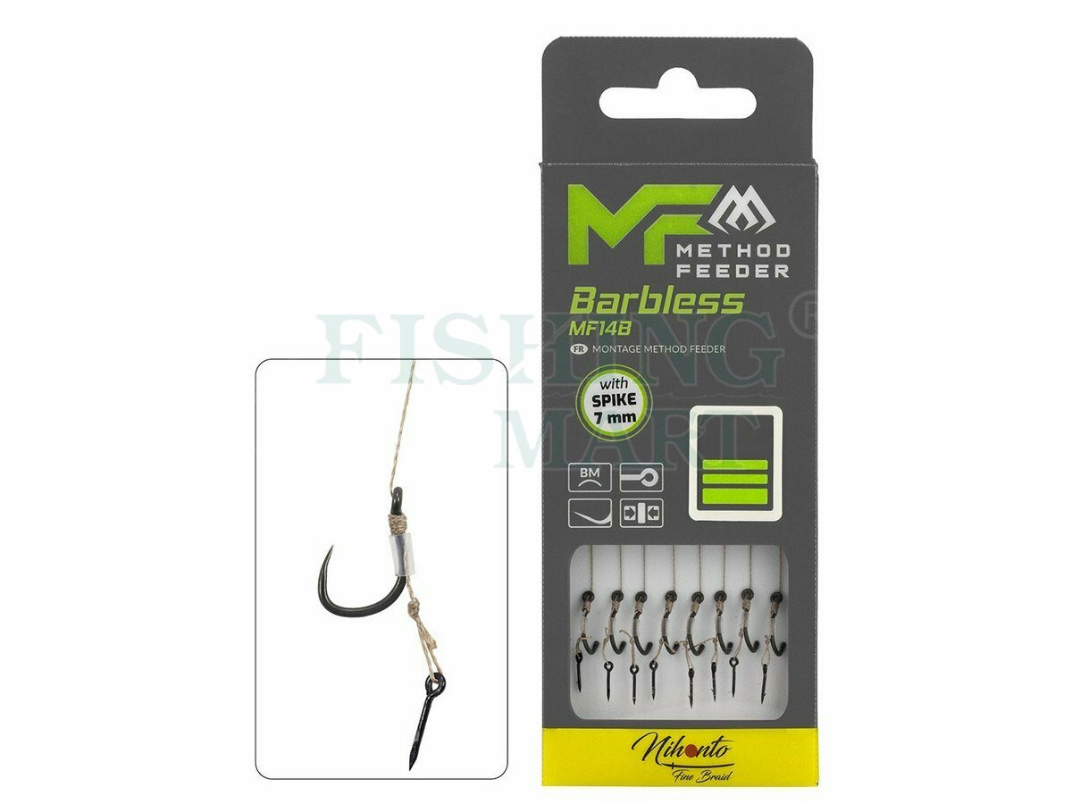 Gotowe przypony do Method Feeder, uwiązane na wzmocnionych i niezwykle ostrych, bezzadziorowych hakach MF14. Gwarantują pewne trzymanie nawet największych okazów. Zakończone gumką, igłą lub push stopem. Dostępne w wersji na plecionce.